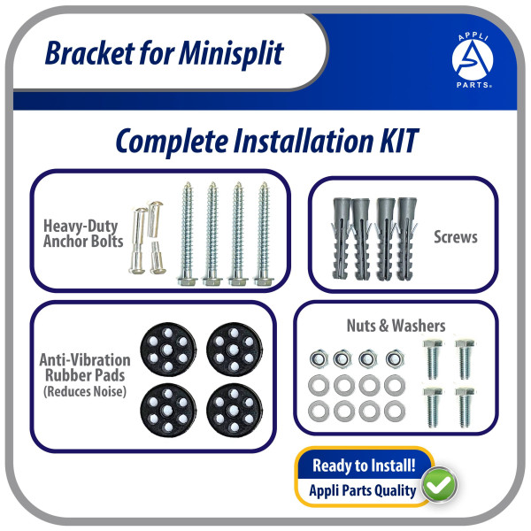 Appli Parts APAB-2160 Mini Split Wall Mounting Bracket - Heavy Duty Outdoor Support Up to 330 lbs, Universal Fit for 5000 to 36000 BTU Units, Includes Anti Vibration Pads and Full Installation Kit