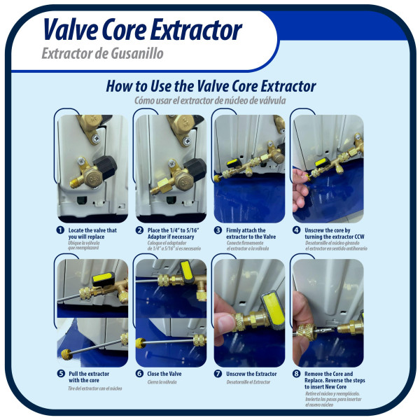 Appli Parts APT-VCR Valve Core Remover Tool with 1/4 to 5/16 in port adaptor Use: In Refrigeration And Air Conditioning Systems To Replace A Faulty Vavle Core Without Needing To Recover Or Release How It Works: Securely Attach The Tool To The Valve To Be Replaced, Unscrew The Valve Core And Pull Out. Close The Valve Universal: Suitable For Many Refrigerants Including R22, R407, R410, R404, R32, R134 Includes Valve Adapter For 5/16 To Specs: Solid Brass Tool, Gaskets Included In Each Connections To Avoid Leak During Operation. Rugged Parts For Easier Ha Confirm that the dimensions and other attributes of the product closely match those of the original item being replaced