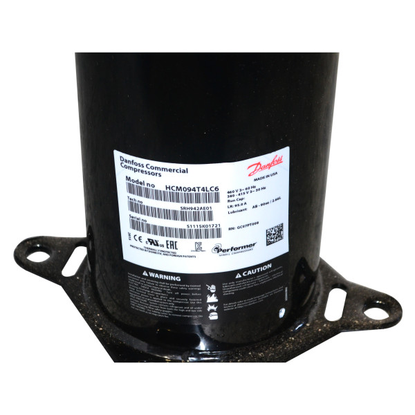 Danfoss HCP094T4LC6 7.8 tons 94,000 btu/h R407C Scroll compressor for Air conditioning 380-415/3/50, 460/3/60 (V/Ph/Hz) Discharge 7/8 in, Suction 1-1/8 in, ODF, PVE Oil 121L0601, 121L0598 Replaces 120U0581, 120U0601, HCM094T4LC6